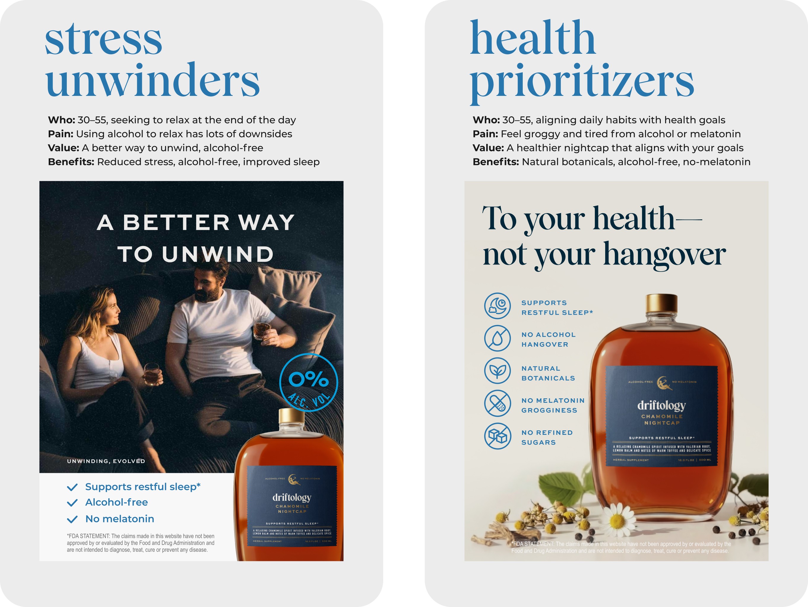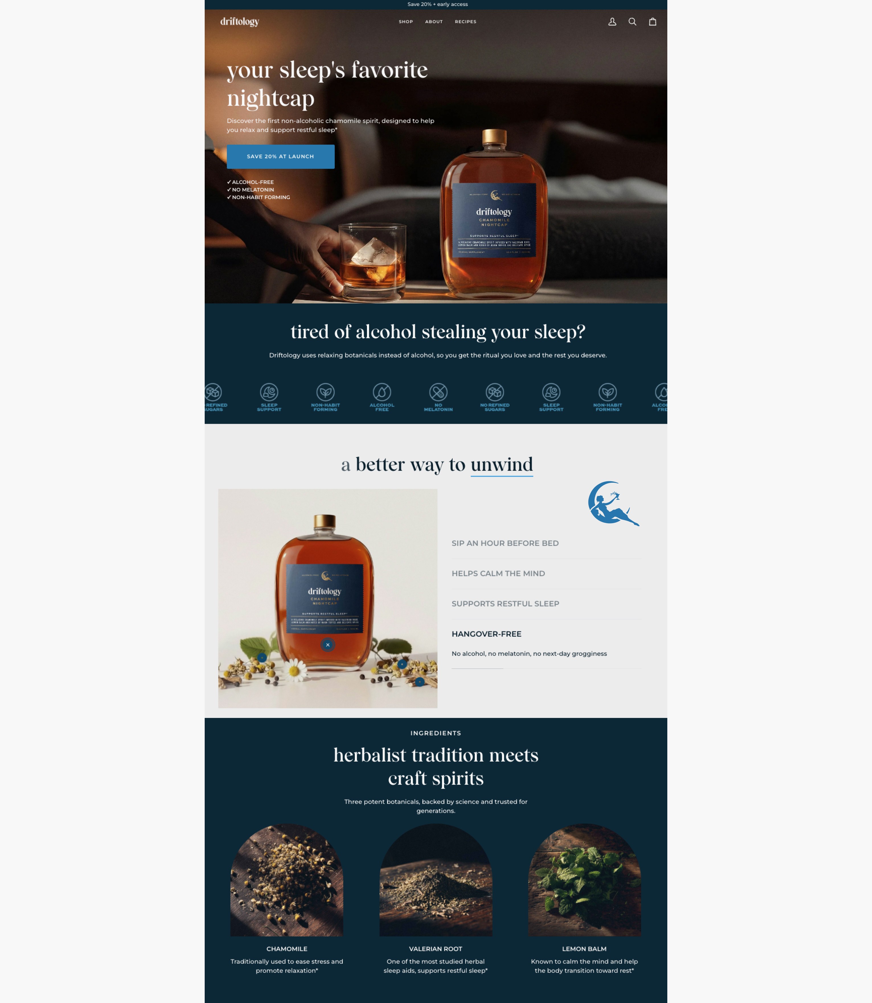 I'm building a non-alcoholic nightcap brand from scratch—owning strategy, creative, and execution end to end. From market research and positioning to performance creative, content, and e-commerce, I used AI-assisted workflows to rapidly test hypothesis, validate demand and inform both brand and product development.